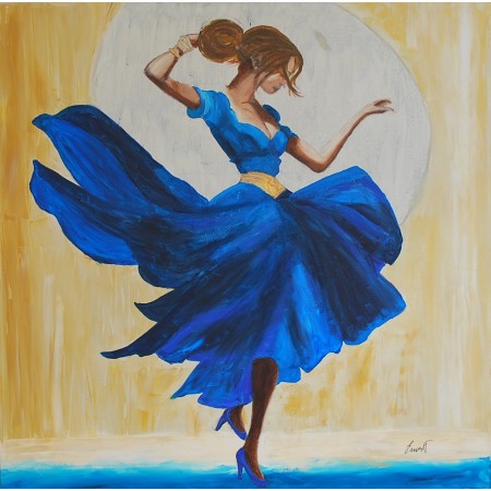 En esta obra, he plasmado la esencia vibrante y enérgica de la danza a través de pinceladas...