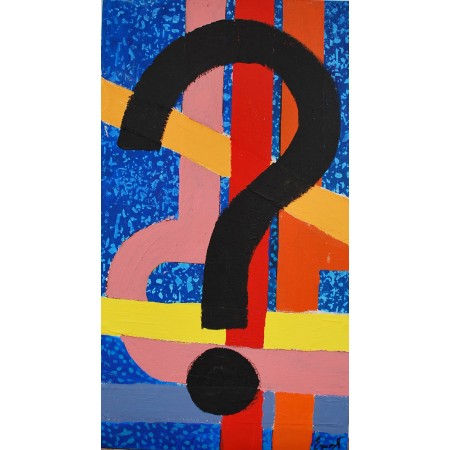 Esta sorprendente obra de arte presenta un gran y llamativo signo de interrogación...