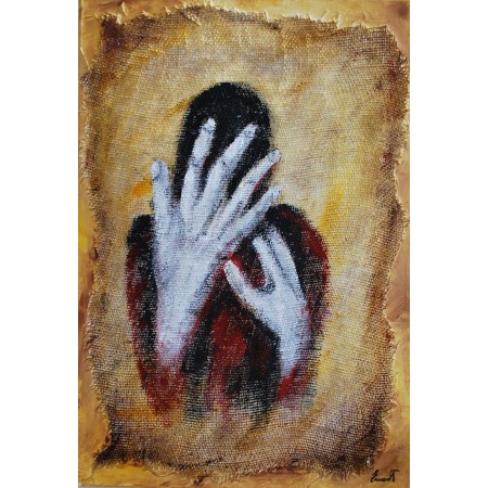 En esta obra, marcada por la textura de la arpillería, evoco una intensa emoción de angustia,...
