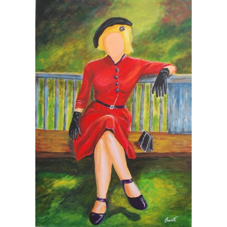 En esta obra, he plasmado la vibrante esencia de una figura femenina sentada en un banco,...