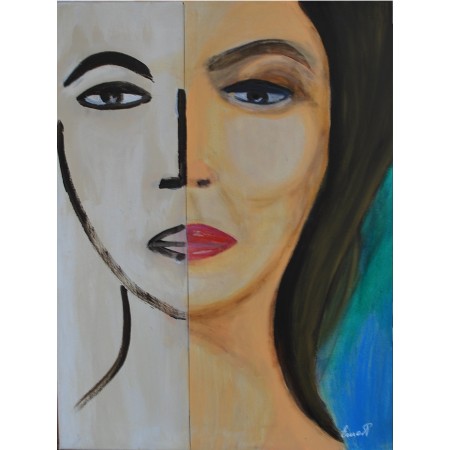 Como artista, buscaba explorar la dualidad y la multiplicidad del ser en este retrato....