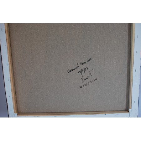 Lienzo extendido sobre marco de madera, pintado a mano con tecnicas acrílicas de medidas 181 x...