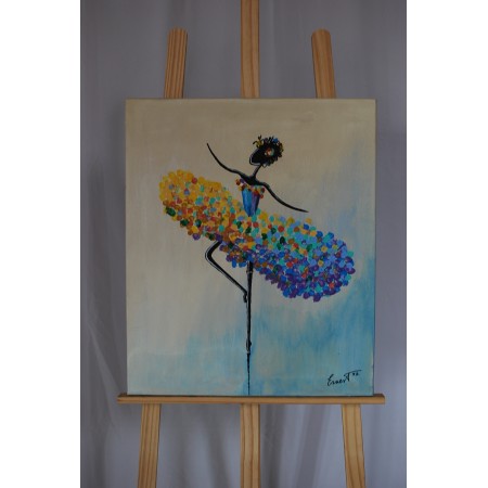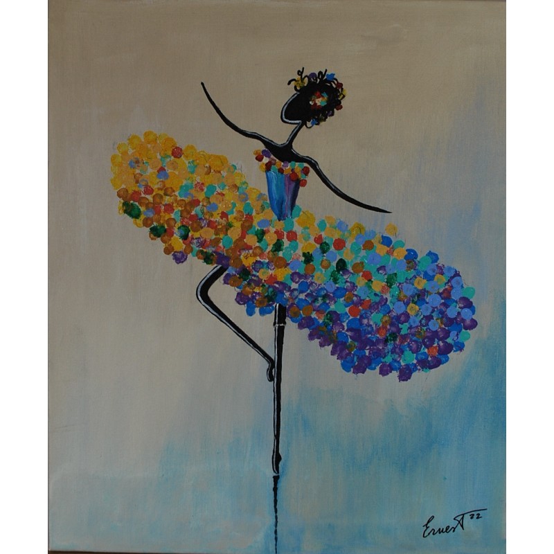 En esta obra, he buscado capturar la esencia efímera y delicada de la danza. Utilicé acrílicos para jugar con la luminosidad y la textura, balanceando el impresionismo con toques minimalistas. Mi bailarina, etérea y casi flotante, simboliza la libertad y la expresión pura del espíritu humano. Su presencia en cualquier espacio es una invitación a elevarse y soñar, llenando el ambiente de color y emoción.