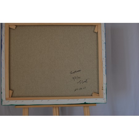 ienzo extendido sobre marco de madera, pintado a mano con técnicas acrílicas, colage,...