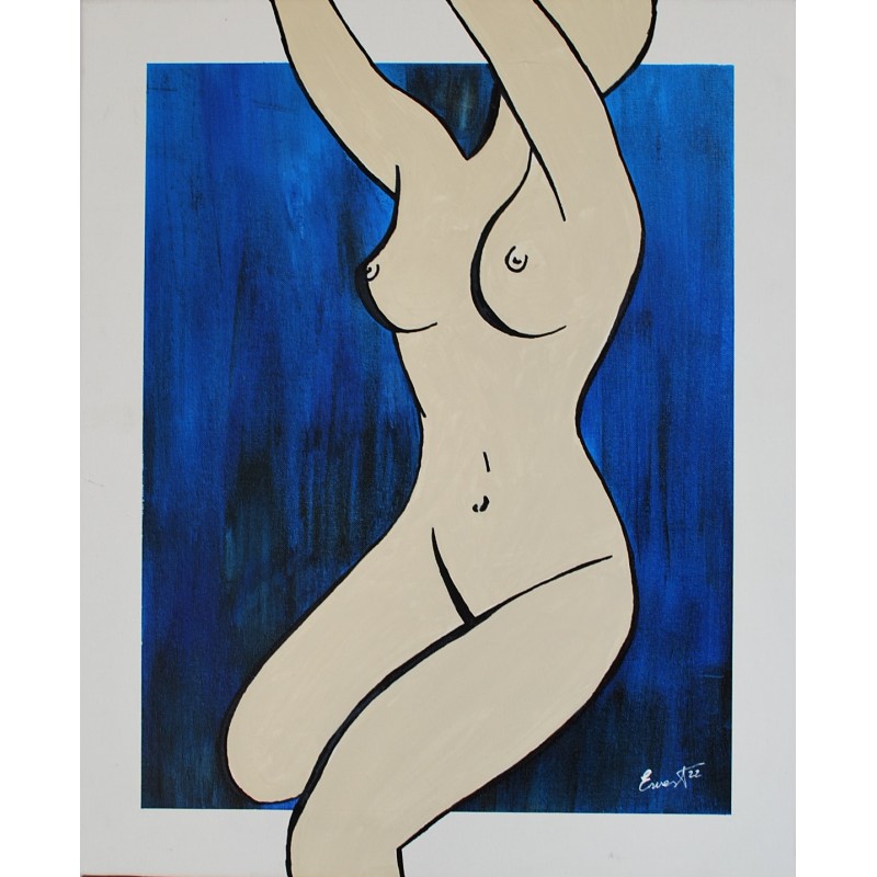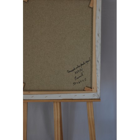 Lienzo extendido sobre marco de madera, pintado a mano con tecnicas acrílicas de medidas 73 x...