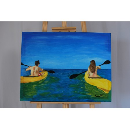Lienzo extendido sobre marco de madera, pintado a mano con tecnicas acrílicas de medidas 82 x...