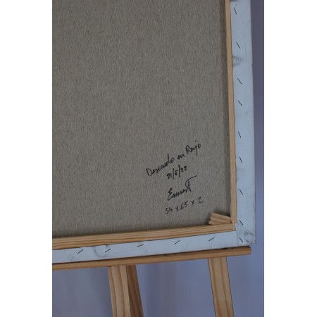 El lienzo está estirado sobre un bastidor de madera de 2 cm. de grosor.