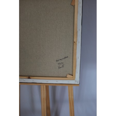 El lienzo está estirado sobre un bastidor de madera de 2 cm. de grosor.