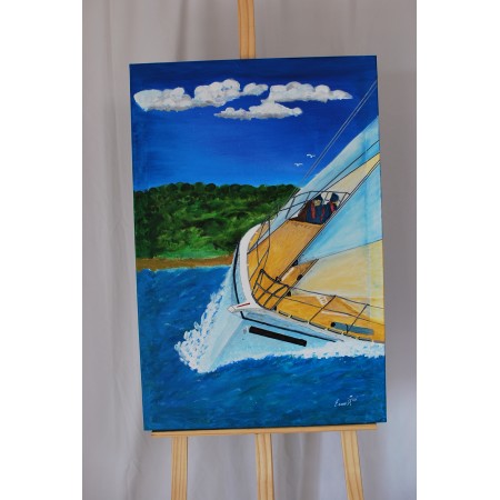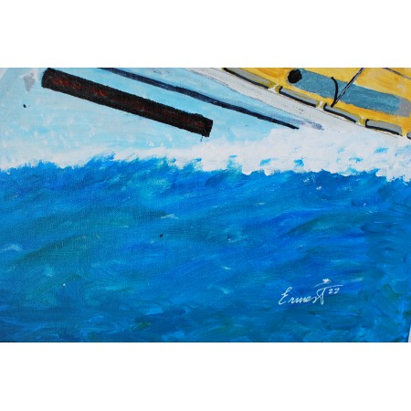 Lienzo extendido sobre marco de madera, pintado a mano con tecnicas acrílicas de medidas 73 x...