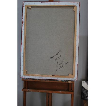 Lienzo extendido sobre marco de madera, pintado a mano con tecnicas acrílicas de medidas 82 x...