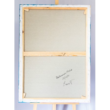 Lienzo extendido sobra bastidor de madera, pintado a mano con técnicas acrílicas, de medidas...