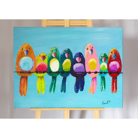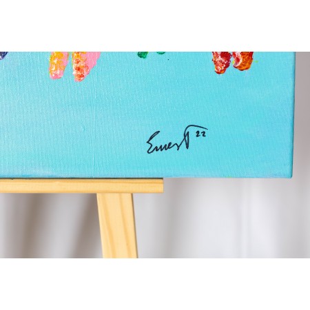 ienzo extendido sobre marco de madera, pintado a mano con técnicas acrílicas, colage,...