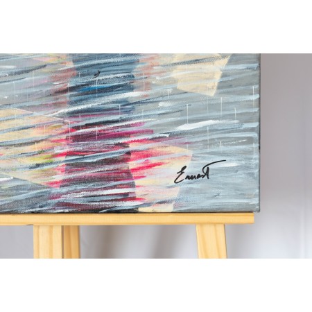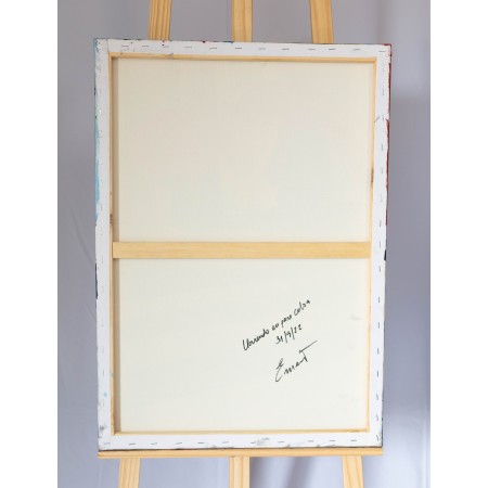 En esta obra, he fusionado técnicas de acrílico, collage y resina para crear una expresión...