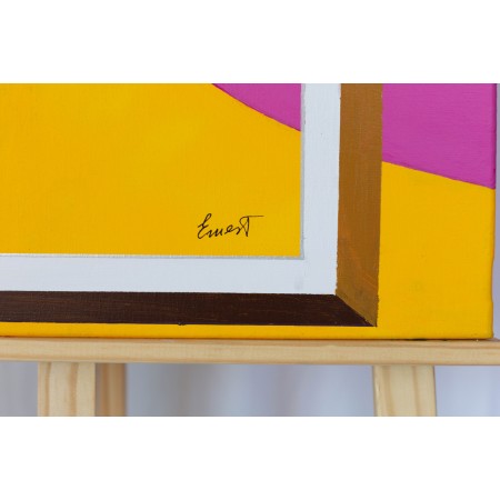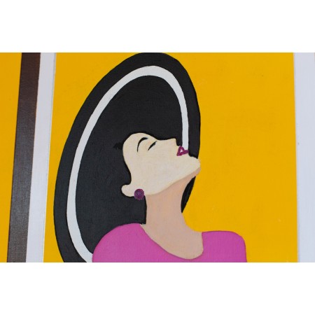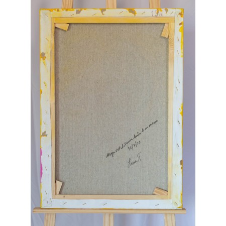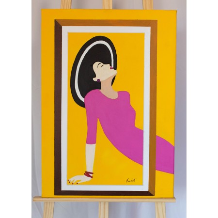 En esta obra, mi intención ha sido capturar la esencia de la libertad y el desahogo emocional, utilizando colores vibrantes y formas audaces. La figura central, una mujer en vestido fucsia, representada de forma figurativa pero con toques semiabstractos, se entrega a un momento de liberación y voluptuosidad. El contraste entre el amarillo intenso del fondo y su enérgico vestido rosa invita a observarla como una celebración de la vida y la feminidad. Esta energía, sin duda, llenará de vida y color cualquier espacio donde se exhiba la obra.