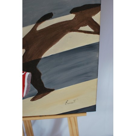 Lienzo extendido sobra bastidor de madera, pintado a mano con técnicas acrílicas, de medidas...
