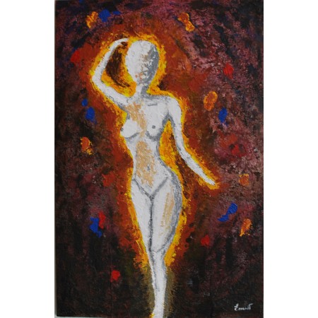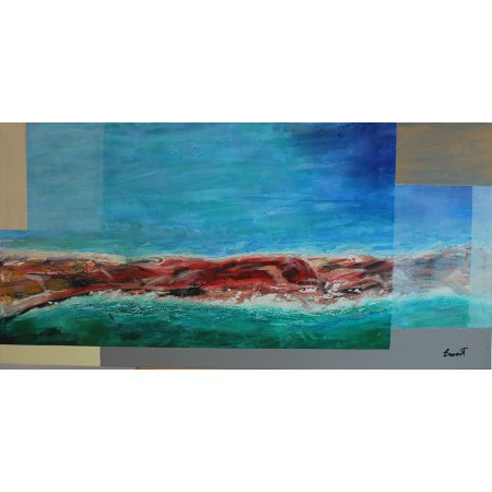 Lienzo extendido sobre marco de madera, pintado a mano con tecnicas acrílicas de medidas 92 x...