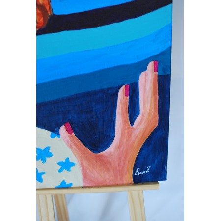 Lienzo extendido sobre marco de madera, pintado a mano con tecnicas acrílicas de medidas 92 x...