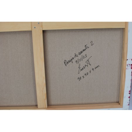2 lienzos extendidos sobre bastidor de madera, pintados a mano con técnicas acrílicas de...
