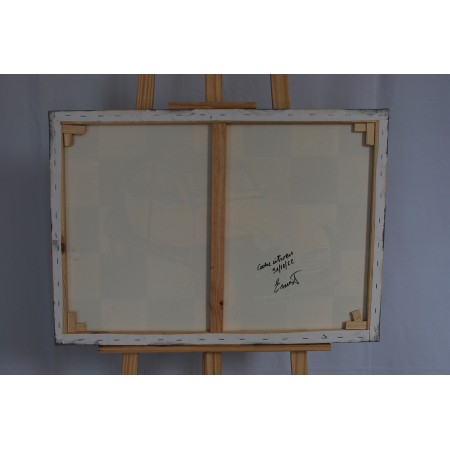 El lienzo está estirado sobre un bastidor de madera de 2 cm. de grosor.