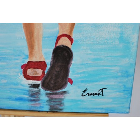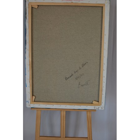 Lienzo extendido sobre marco de madera, pintado a mano con tecnicas acrílicas de medidas 73 x...