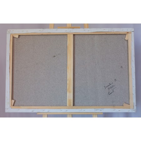 El lienzo está estirado sobre un bastidor de madera de 2 cm. de grosor.