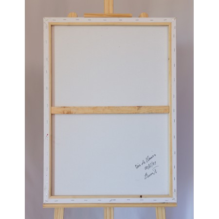 El lienzo está estirado sobre un bastidor de madera de 2 cm. de grosor.