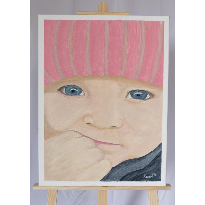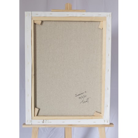Lienzo extendido sobra bastidor de madera, pintado a mano con técnicas acrílicas, de medidas...