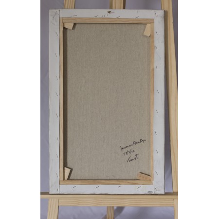 El lienzo está estirado sobre un bastidor de madera de 2 cm. de grosor.