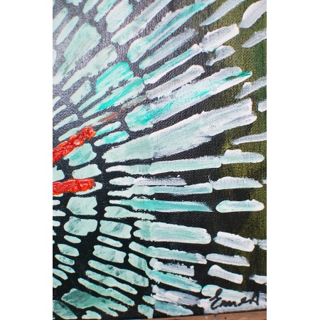 Este es un cuadro acrílico, pintado sobre lienzo estirado, sobre marco de madera, está pintado y firmado a mano. Es un ejemplar único, tiene una tamaño de 25 x 35 x 2 cm. y pesa 0,5 Kg.