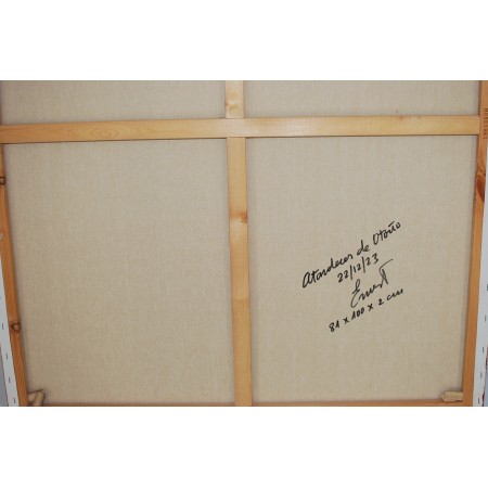 El lienzo está estirado sobre un bastidor de madera de 2 cm. de grosor.