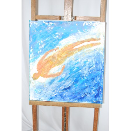 Este es un cuadro acrílico, pintado sobre lienzo estirado, sobre marco de madera, está pintado y firmado a mano. Es un ejemplar único, tiene una tamaño de 60 x 65 x 2 cm. y pesa 2,5 Kg.