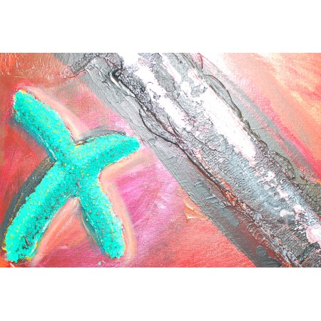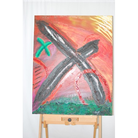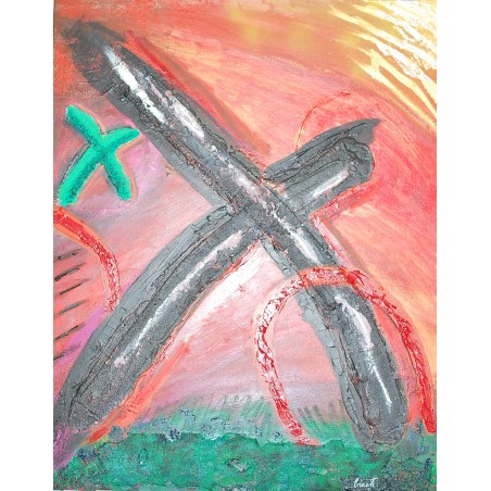 He creado esta obra con un fervor apasionado, mezclando acrílicos con texturas táctiles como arena y cinta, complementados por bordados y grabados en relieve. Sus formas abstractas y colores vibrantes reflejan un estilo que mezcla lo simbólico y el arte pop. Esta pintura es más que un objeto; es un mensaje de energía y emoción, una pieza que captura el dinamismo de la vida y lo transmite directamente a tu hogar.