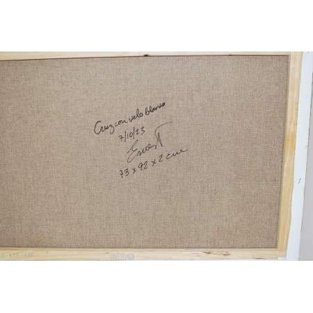 El lienzo está estirado sobre un bastidor de madera de 2 cm. de grosor.