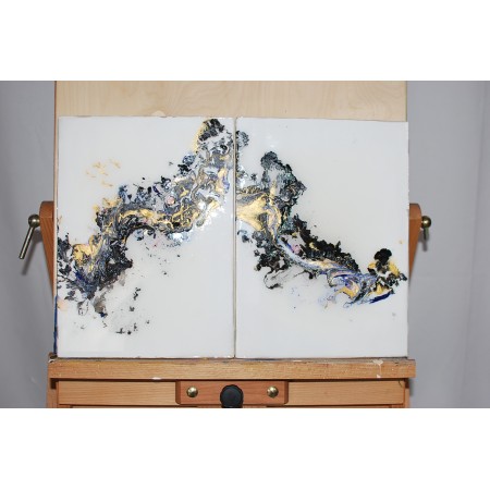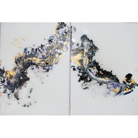 Este es un cuadro acrílico diptico con epoxi, pintado sobre lienzo estirado, sobre marco de madera, está pintado y firmado a mano. Es un ejemplar único, tiene una tamaño de 48 x 33 x 2 cm. y pesa Kg.