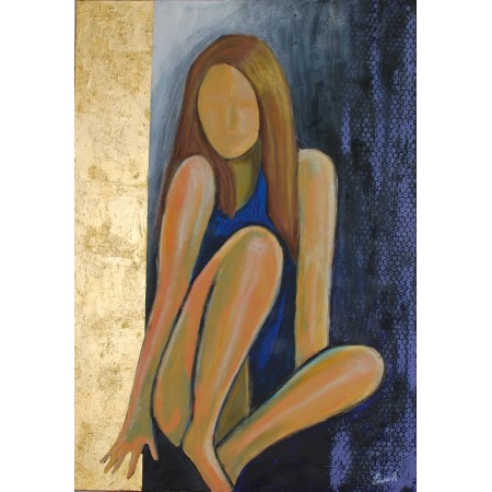 En esta obra sobre la mujer, fusioné la acrílica con la impresión en relieve y el dorado para...