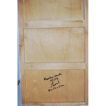 Este es un cuadro acrílico, pintado sobre madera, sobre marco de madera, está pintado y firmado a mano. Es un ejemplar único, tiene una tamaño de 50 x 87 x 2 cm. y pesa 2,5 Kg.