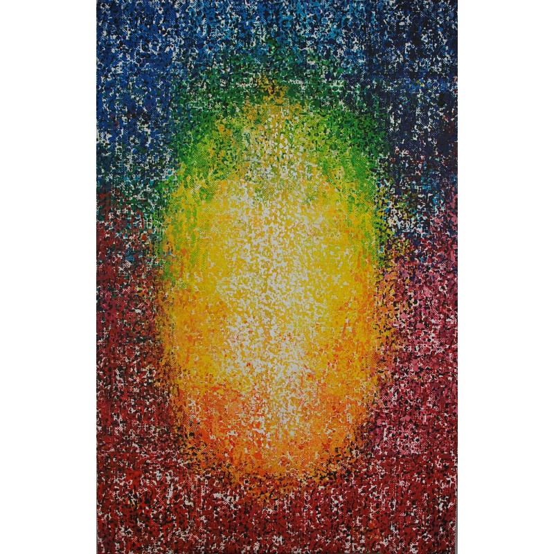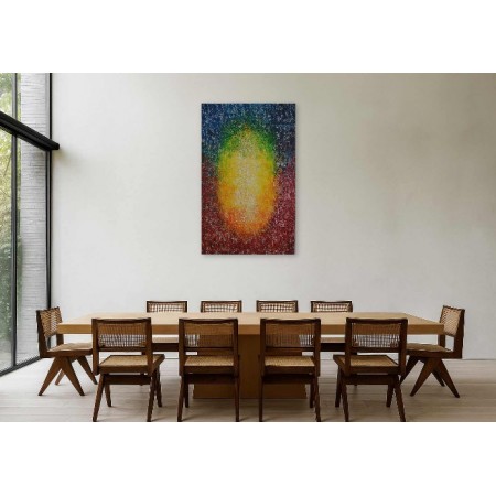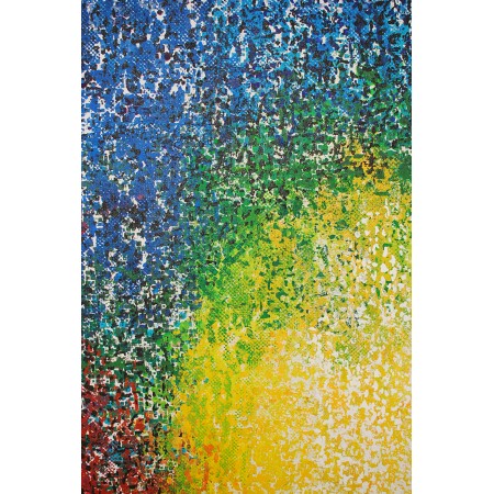 Mi obra es una explosión de emoción y color, donde el acrílico y la técnica de impresión en relieve se encuentran para crear una danza abstracta y expresionista. Cada forma geométrica resuena con la energía del pop art, formando un mosaico de pasión que desafía la estructura y la regularidad. Diseñé esta pieza para transmitir vibraciones intensas y alegres, infundiendo vitalidad y un espíritu audaz en cualquier espacio.