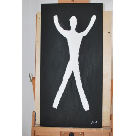 Lienzo extendido sobre marco de madera, pintado a mano con tecnicas acrílicas de medidas 92 x...