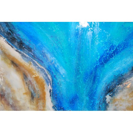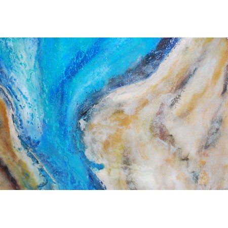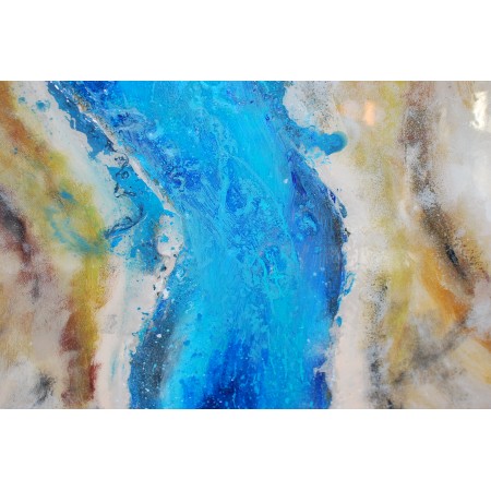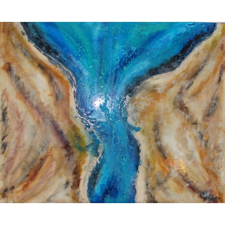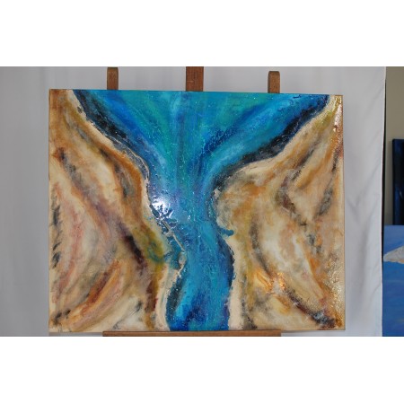 En esta obra, fusioné acrílico, collage y resina para capturar un torrente de emociones...
