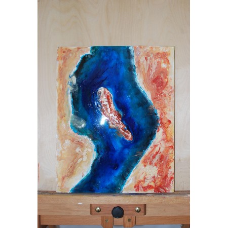 Este es un cuadro acrílico, pintado sobre lienzo estirado, sobre marco de madera, está pintado y firmado a mano. Es un ejemplar único, tiene una tamaño de 133 x 41 x 2 cm.y pesa 1,5 Kg. terminado en epoxi.