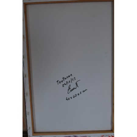 El lienzo está estirado sobre un bastidor de madera de 2 cm. de grosor.