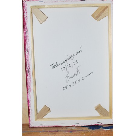 Este es un cuadro acrílico, pintado sobre lienzo estirado, sobre marco de madera, está pintado y firmado a mano. Es un ejemplar único, tiene una tamaño de 25 x 35 x 2 cm.y pesa 0,5 Kg.