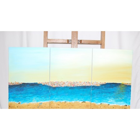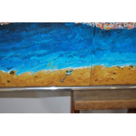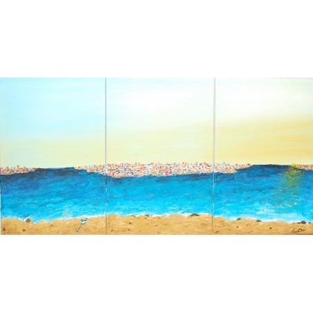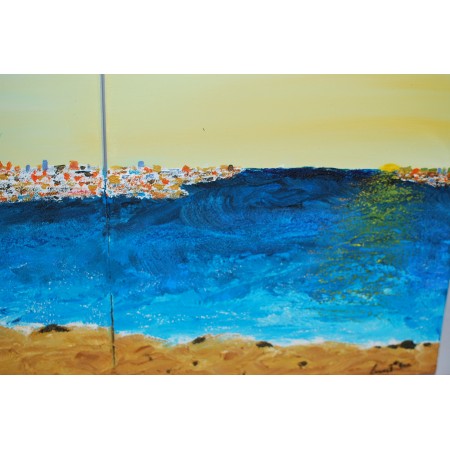 Este es un cuadro acrílico, pintado sobre lienzo estirado, sobre marco de madera, está pintado y firmado a mano. Es un ejemplar único, tiene una tamaño de 120 x 60 x 2 cm. y pesa 2,5 Kg.