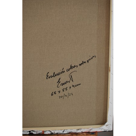 Lienzo extendido sobre marco de madera, pintado a mano con colores acrílicos, de medidas 65 x 85 x 4 cm.