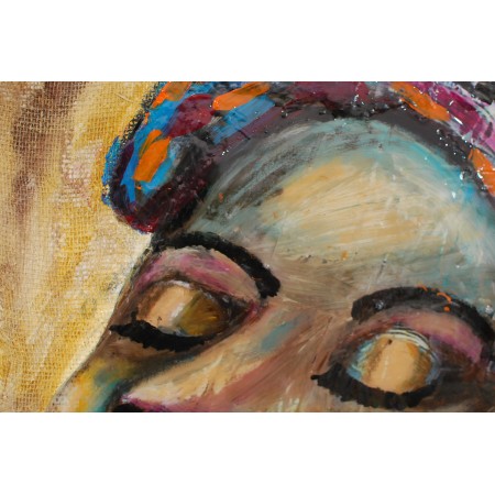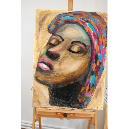 En esta obra, he fusionado técnicas de acrílico, collage y resina para crear una expresión vibrante y enérgica. La incorporación del estilo semiabstracto y figurativo realza la profundidad emocional del retrato, invitando a reflexionar sobre la complejidad del ser humano. Cada trazo y color busca evocar emociones intensas, agregando una atmósfera de inspiración y energía positiva a cualquier espacio.