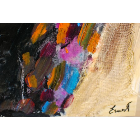 ienzo extendido sobre marco de madera, pintado a mano con técnicas acrílicas, colage,...