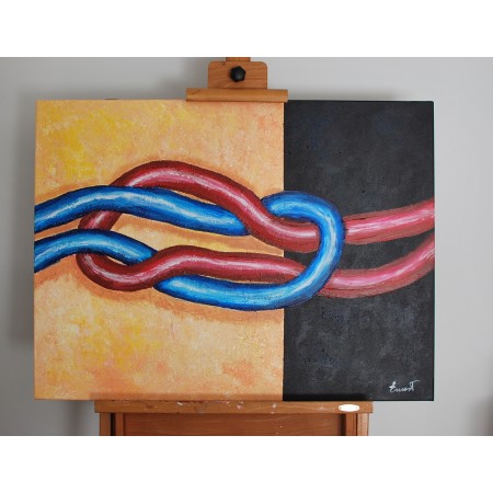 En esta obra, he explorado la conexión y la interdependencia a través de cadenas entrelazadas en colores vibrantes de acrílico, usando técnicas de impresión en relieve. Cada eslabón, pintado con pinceladas impresionistas y figurativas, simboliza las relaciones humanas, destacando cómo cada interacción añade fuerza y color a nuestras vidas. Esta pieza irradiará energía y calidez en cualquier hogar, recordándonos la belleza de la conexión humana.