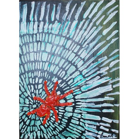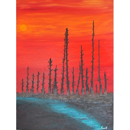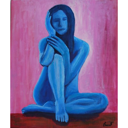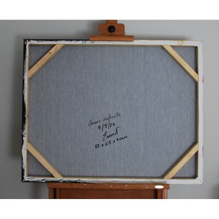 Lienzo extendido sobre marco de madera, pintado a mano con tecnicas acrílicas de medidas 82 x 65 x 4 cm