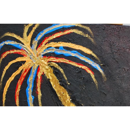 En esta obra, utilizo la técnica del acrílico y la impresión en relieve para capturar la efímera belleza de un fuego artificial. Inspirado por el impresionismo, he querido plasmar no solo el estallido luminoso, sino también la emoción vibrante que despierta en el espectador. Esta pieza destila un momento de alegría pura y efervescente, ideal para energetizar y llenar de vida cualquier espacio.