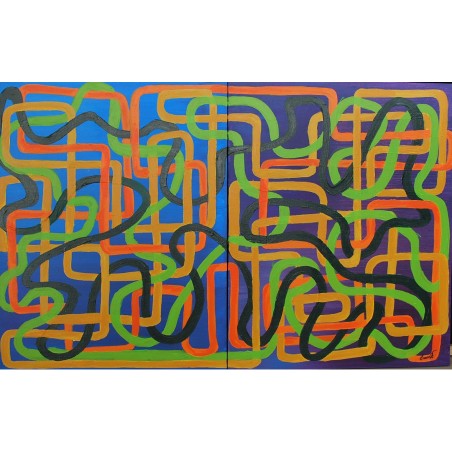 Mi obra es una danza de líneas y colores vivos, donde cada trazo es un paso en un laberinto de emociones y pensamientos. Utilizando acrílicos, he creado un juego de formas geométricas y semiabstractas que invitan a perderse y a reflexionar. Esta pieza transmite una energía vibrante y un espíritu de libertad, y al observarla, uno puede sentir una inyección de vitalidad y optimismo en el espacio donde reside.